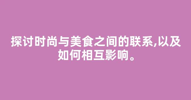 时尚和美食之间也存在着相互影响,彼此互相促进发展。首先,时尚可以为美食提供灵感。有些餐厅的装修和摆盘设计就是参考了时装秀上的元素,而有些食材和烹饪方式也是来自于不同国家的传统服饰和文化。反过来,美食也可以为时尚注入灵感。一些餐厅里的菜品本身就是一种艺术品,可以启发时装设计师大胆创新,用食品元素来设计衣服或者饰品。